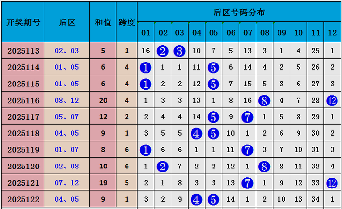 后划分析:上期后区开出04 05,和值9,较上期和值下落,本期预测和值会高涨,看好号码02 10,和值12。